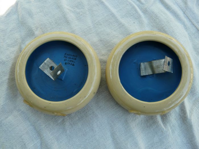 Конденсаторы TGL 68-109 мощные, на напряжение 13кВ, 2шт. б/у, из списанной установки. Ёмкость 680 пФ.Цена 300 грн за оба.