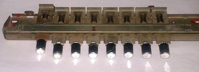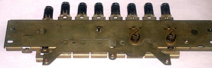 Блок приводов переключателей диапазонов и др. функций радиоприемника.После демонтажа, без самих переключателей.