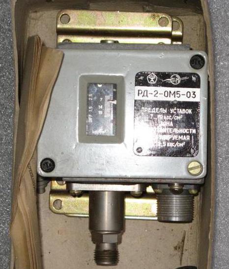 Датчики-реле давления РД-ОМ5 и РД-ОМ5-А являются комплектующими изделиями холодильных установок и предназначены для контроля, управления и регулирования давления газообразных и жидких сред, неагрессивных к стали (для РД-ОМ5-А), латуни (для РД-ОМ5) в холодильных установках, применяемых на судах, железнодорожном и автомобильном подвижных составах и в стационарных холодильных установках. Приборы РД-1-ОМ5-01.1 и РД-2-ОМ5-03.1 используются для тех же целей на крановых кондиционерах.