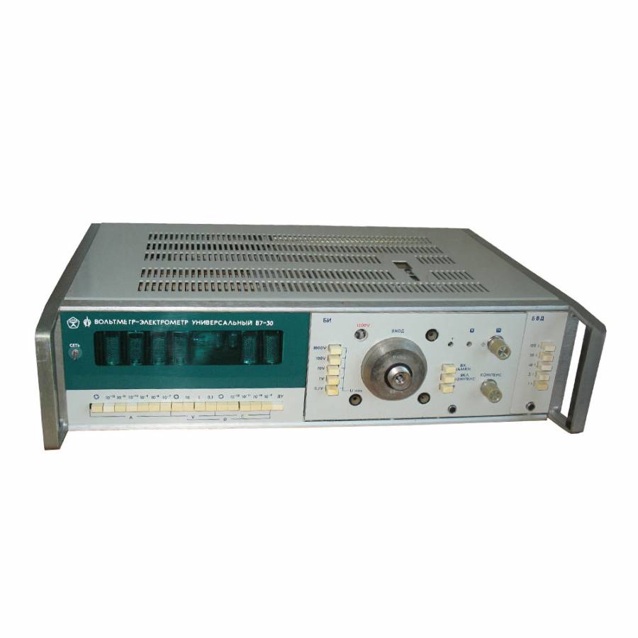 В7-30 Вольтметр-элетрометр универсальный предназначен для измерения напряжения постоянного тока, медленно меняющихся напряжений, токов и малых зарядов от источников с высоким выходным сопротивлением, а также для измерения сопротивления постоянному току.