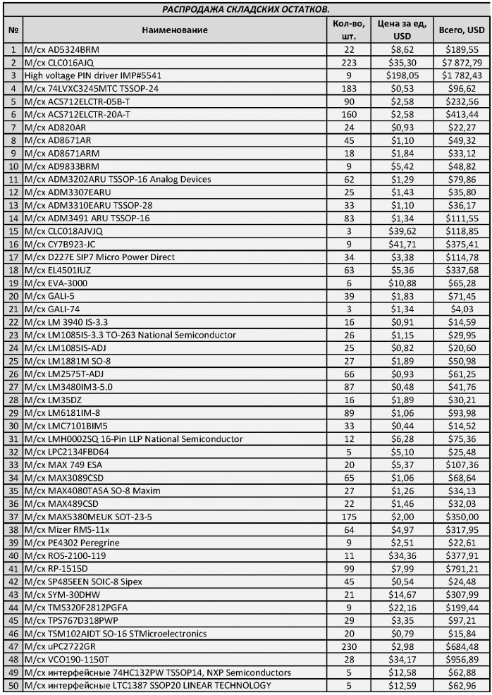 Распродажа микросхем (Распродажа складских остатков! )