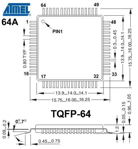 ATmega64-16AU ATMEL 8-битный микроконтроллер