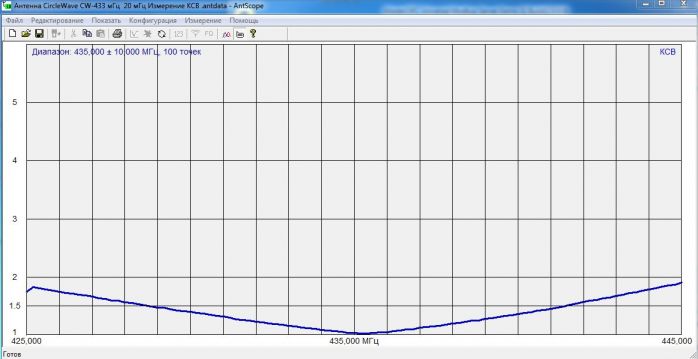 Диапазон частот: 425 — 445 МГц. при КСВ (по краям диапазона) не более 1,8